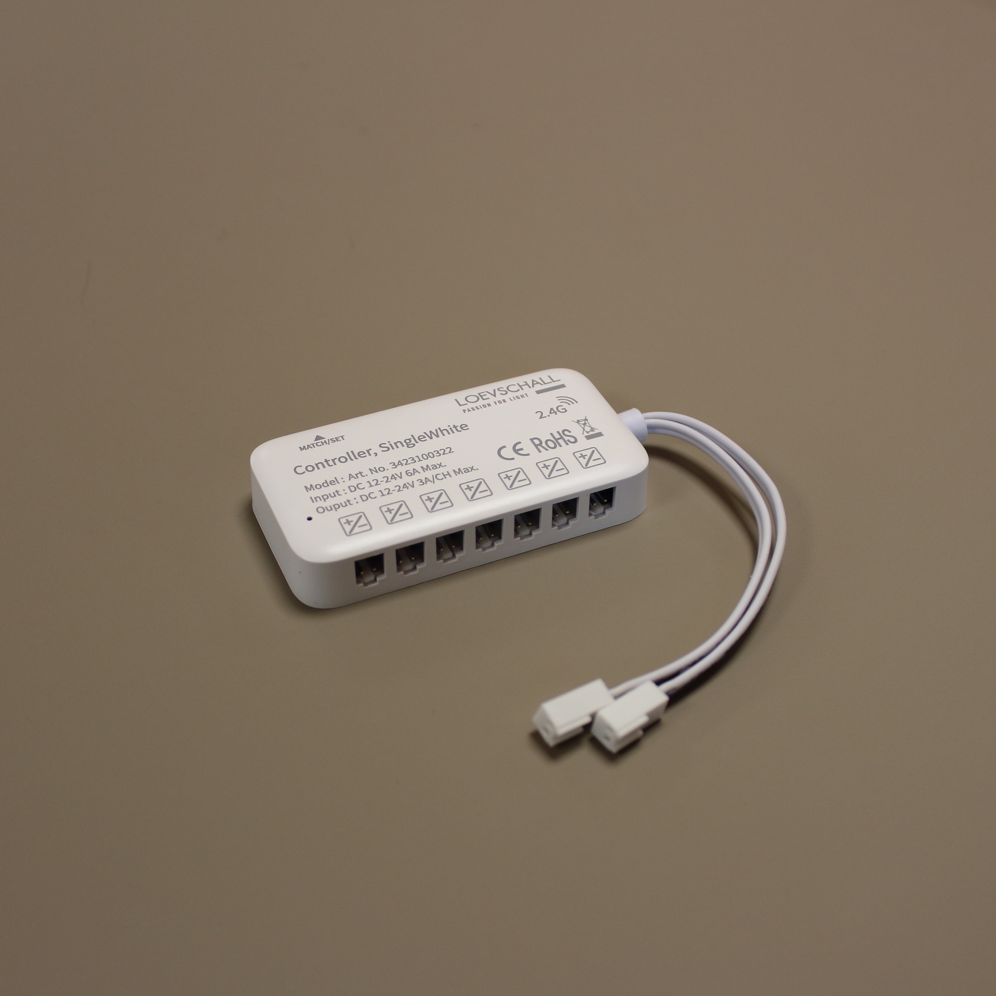 CUE-kontrolleren SingleWhite er kompatibel med hele Loevschall 12V-lysserien.