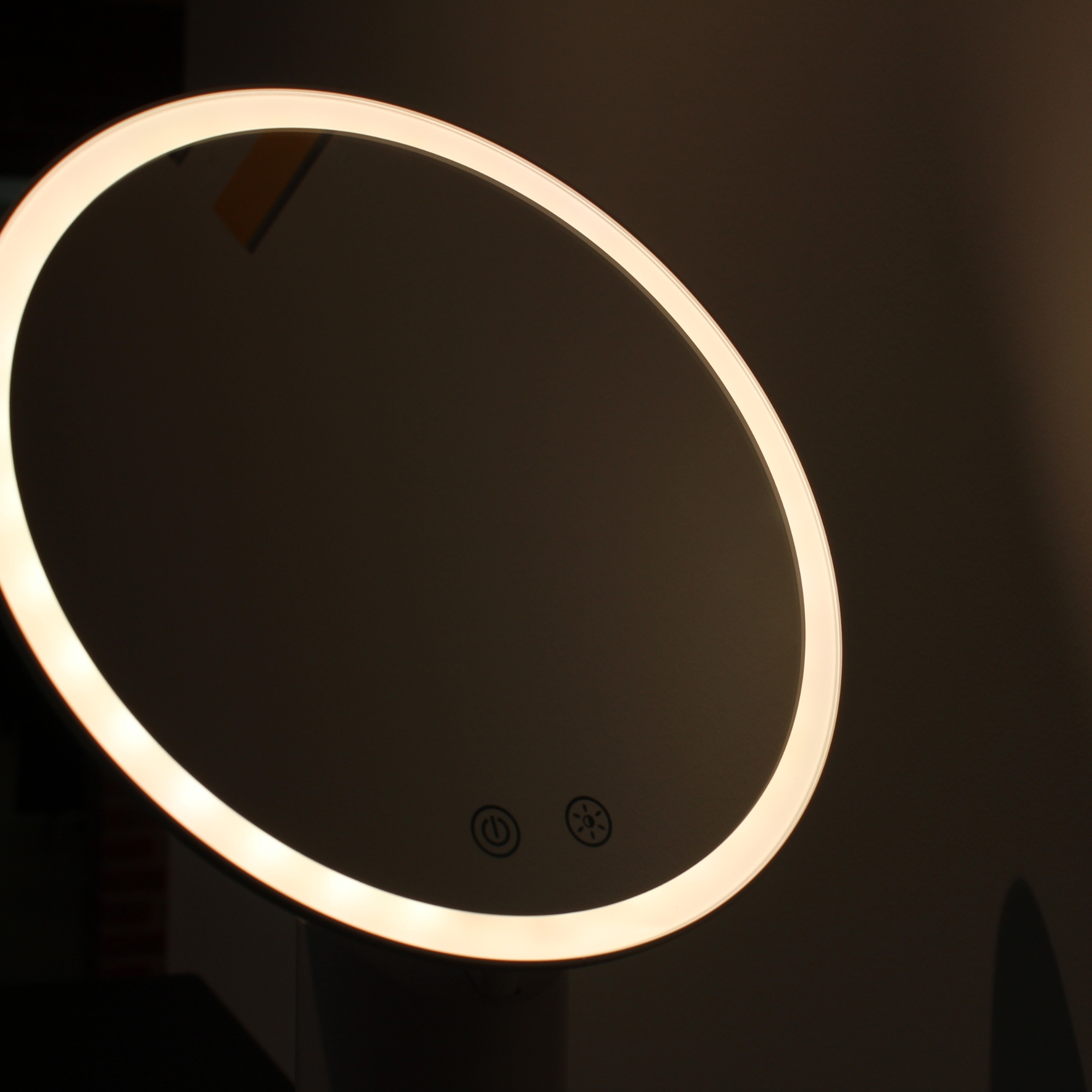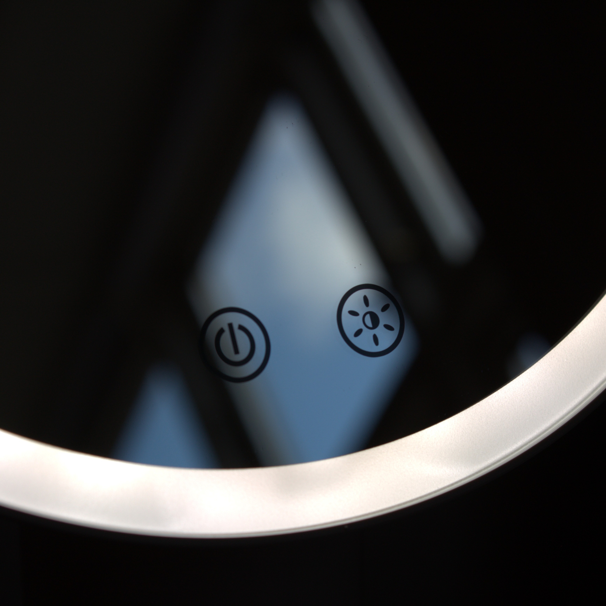 Lyset betjenes via det integrerte berøringspanelet, hvor både fargetemperatur og lysstyrke enkelt kan justeres etter dine behov. Lyset varierer fra varmt til kjølig hvitt, slik at du kan skape riktig lys – enten det er til morgenrutinen, barbering eller sminke.