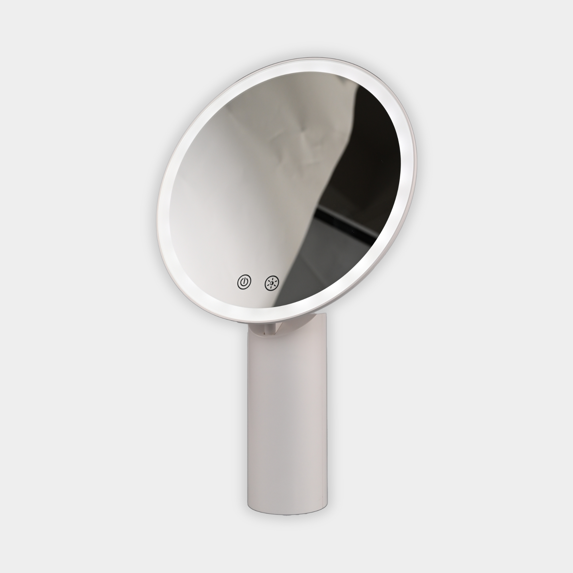 Bridget er et frittstående speil på stativ som enkelt kan flyttes rundt og brukes akkurat der du trenger det. Det lades via USB-C og er derfor ideelt for både bad, soverom og ungdomsrom – uten krav om permanent installasjon. Speilflaten kan vippes for å oppnå optimal vinkel, og den stabile basen med integrert sugekopp sørger for at speilet står sikkert. Det enkle designet gjør Bridget til et naturlig og stilig element i ethvert interiør.