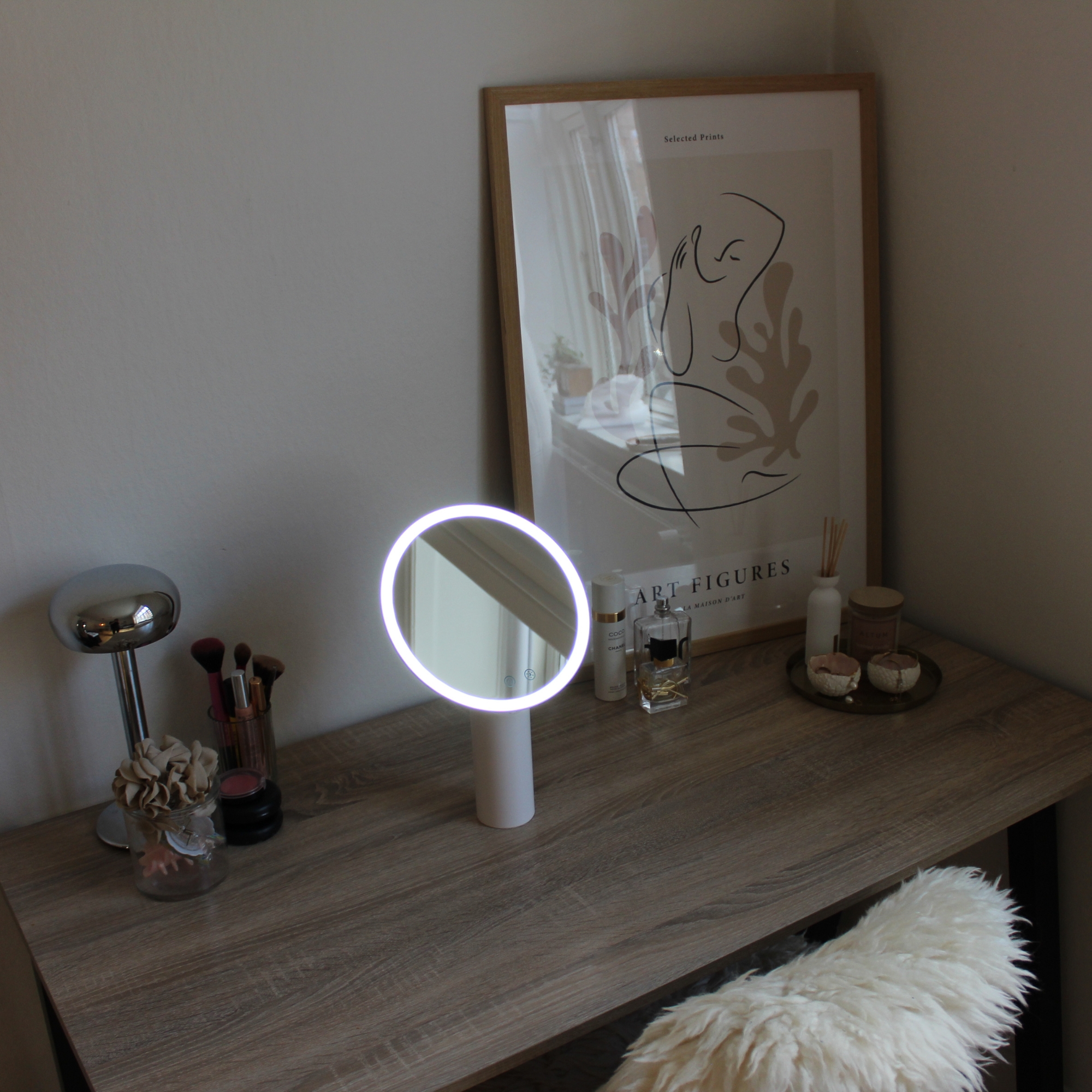 Bridget lades enkelt via USB-C og kombinerer design og funksjonalitet i et speil som både er praktisk i hverdagen og et vakkert element i interiøret.