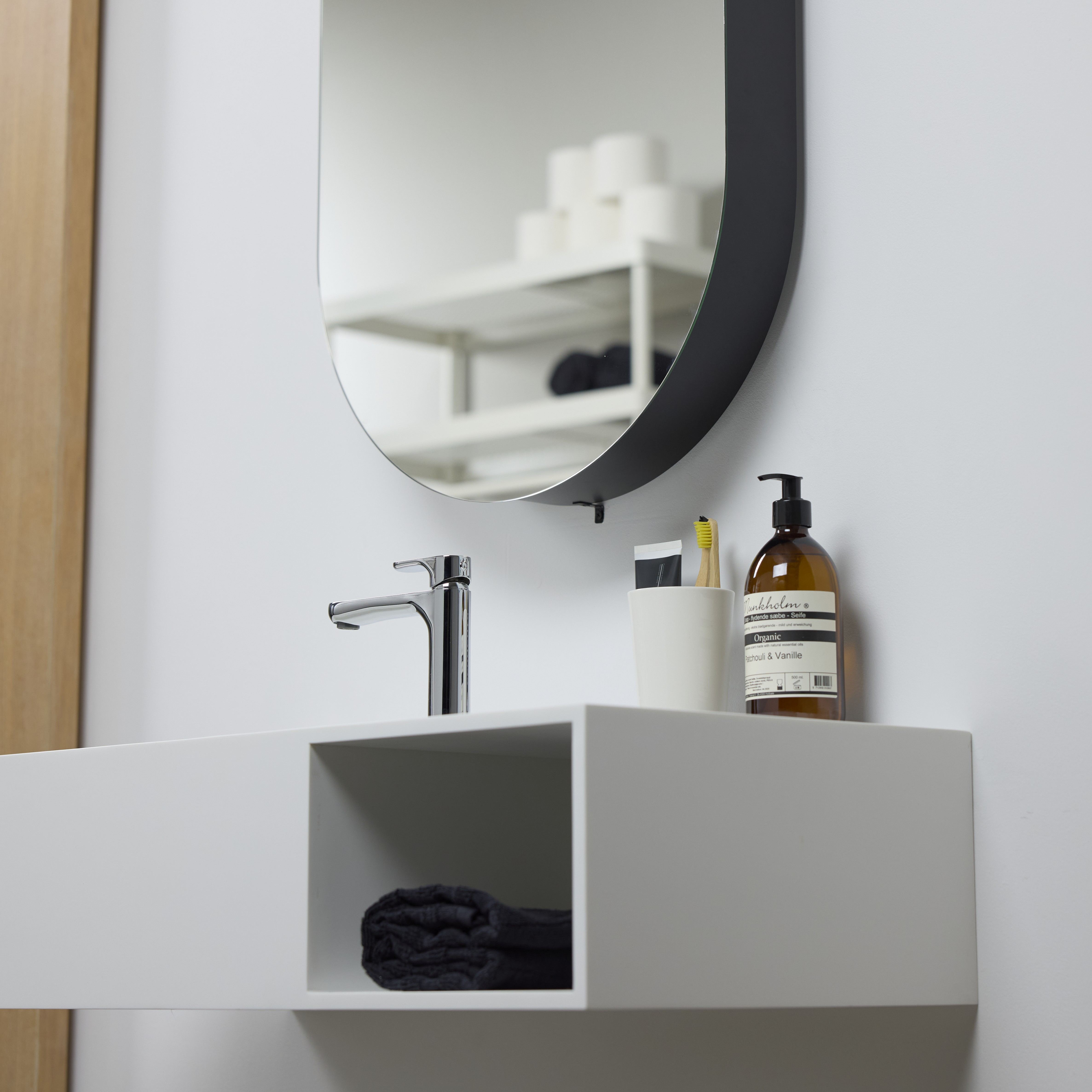 - Ekstra oppbevaringsplass for det kompakte badet